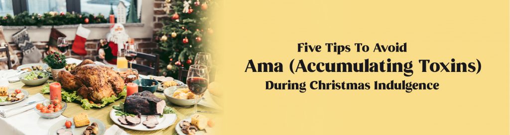 So, what is the Ayurvedic way of getting rid of Christmas-time ama? Simple, you must keep the digestive fire, called agni, burning. When agni is strong, your body can digest food efficiently without leaving toxins. Over-indulgence in rich Christmas treats will crush your digestive agni. Agni breaks down food to nourish cells and purifies metabolic waste. But when it is weakened, the rest of the body, too, becomes weak.